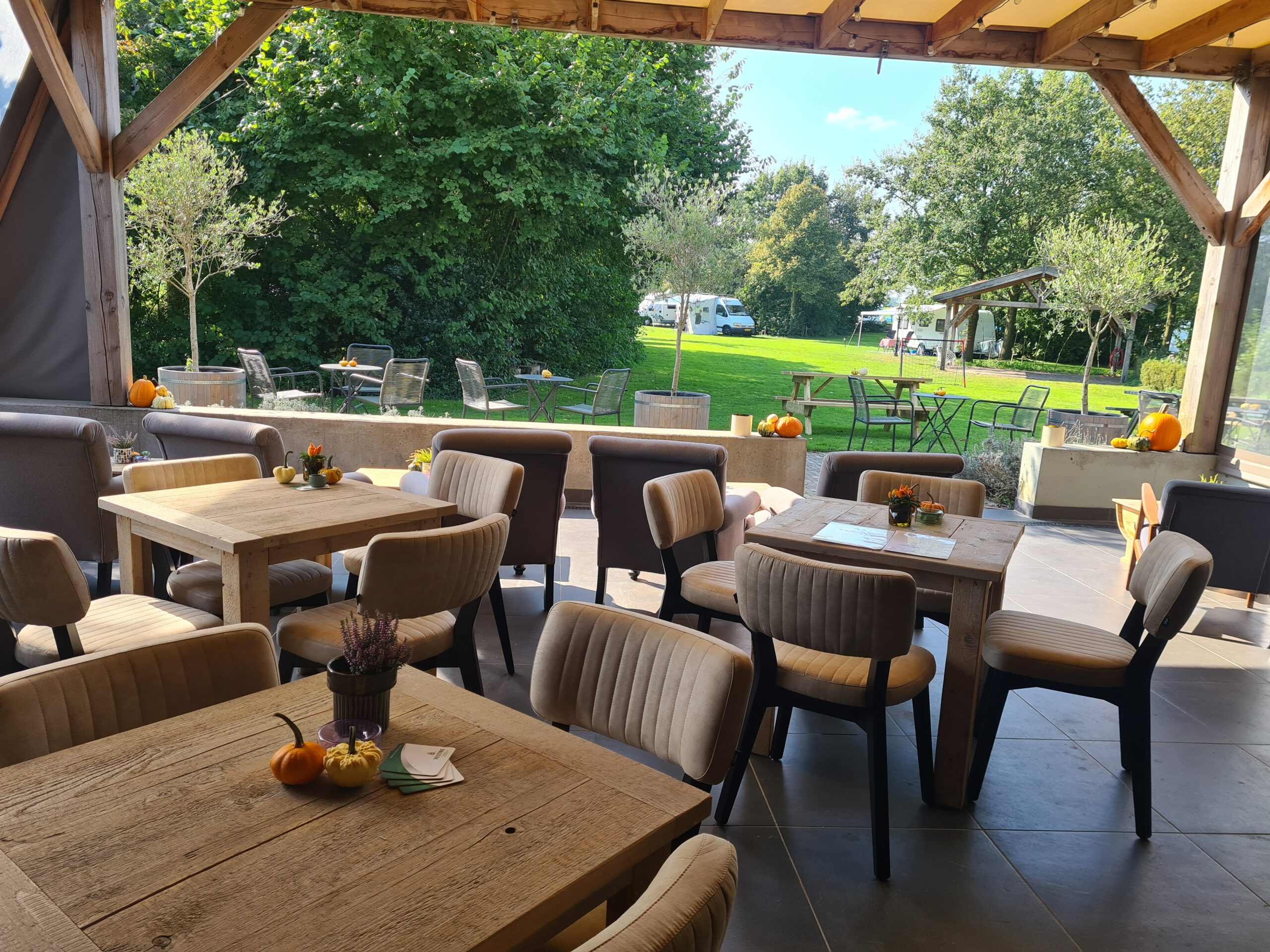 Tijdens een fietstocht of wandeling tijd voor een koffiepauze of afsluiten met een borrel? Of sta je bij ons op de camping en heb je zin om gezellig op ons terras te komen borrelen?