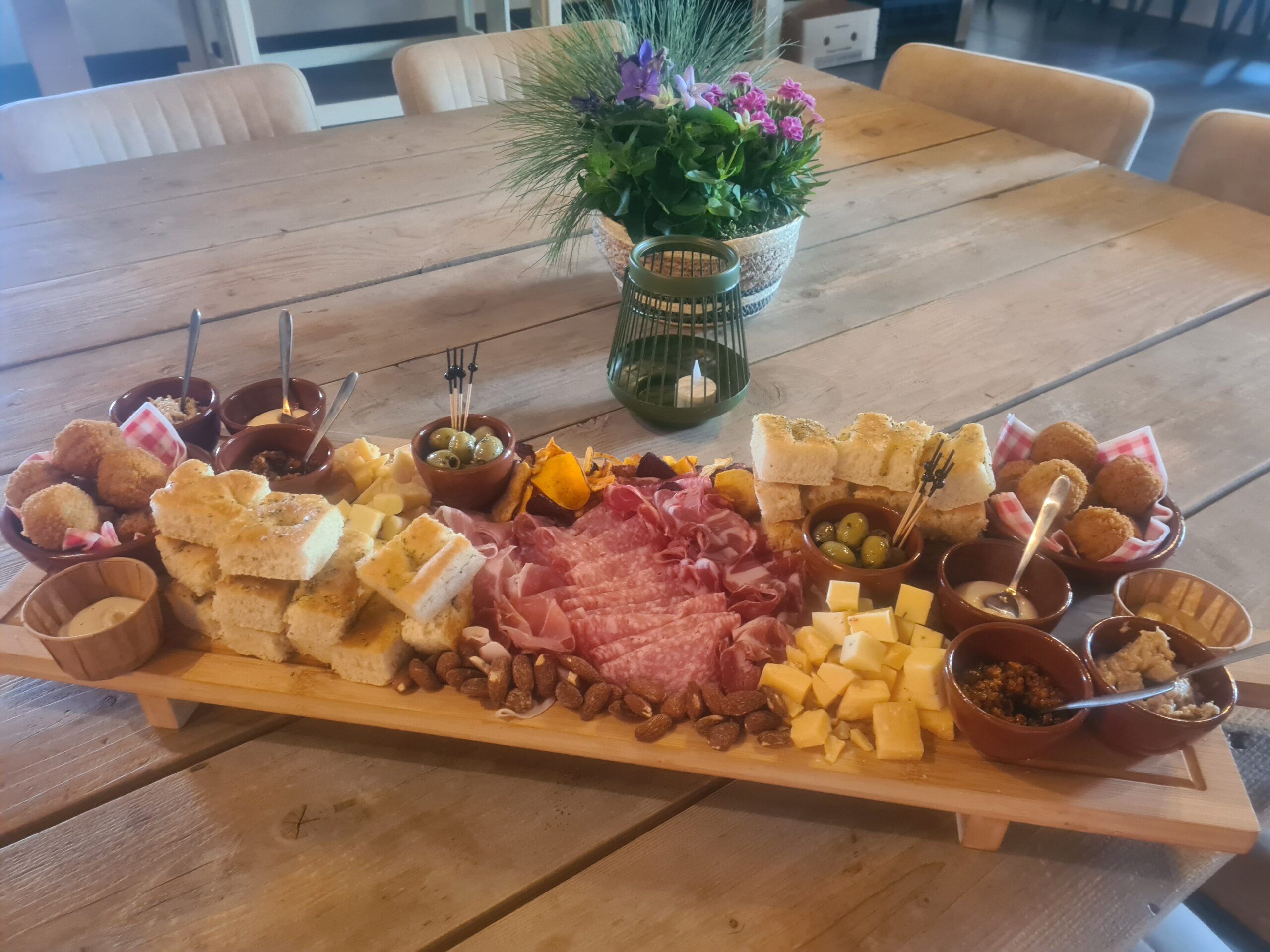 Wij staan voor jullie klaar met uiteraard onze eigen wijnen, maar ook frisdrank, bieren en koffie of thee. Voor de kleine trek of voor bij de borrel serveren wij verschillende hapjes.